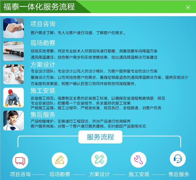 環?照{售后:凡是安裝了福泰廠家生產的產品,免費保修2年,終身跟蹤維護,在保修期內24小時及時去現場維修。 福泰客戶服務中心在售前、售中、售后等方面為客戶提供更專業的服務: 售中:根據工程師反饋回的信息,工程部將會為您設計一套經濟合理、技術先進的預算方案。確定方案,合同訂立后,可根據您的需求為您提供專業的安裝、調試、培訓等一條龍服務,一切為客戶著想,所以受到好的美譽和客戶的支持。